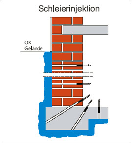 Bei diesem Injektionsverfahren wird ein Gelschleier außerhalb des Baukörpers aufgebaut.